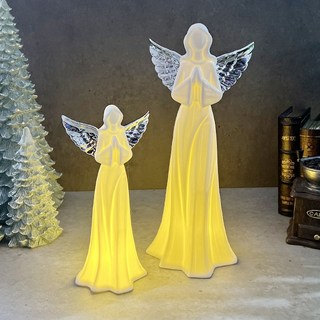 소망 로맨틱 천사 장식품 미니장식 천사인형 천사장식 LED조명 무드등 도자기장식 집들이선물, 대사이즈