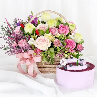 99플라워 (당일수령) 사랑의향기+케익 [ST-A1921] - 전국꽃배달서비스 기념일 봄 생일 케익 생화 꽃선물 당일배송 꽃바구니, 혼합색상, 1개